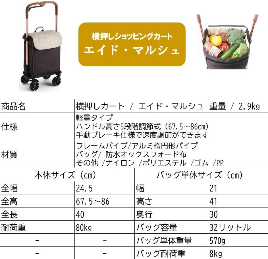 重量 7.9kg 座幅40cmで、全幅49cmと超軽量・コンパクト設計で取り回しが楽々です。耐荷重100kg