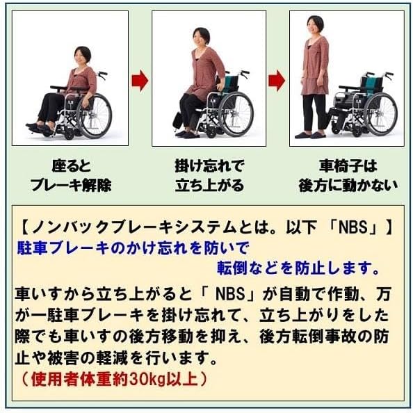 エムズハウスが提供する車椅子とまっティ MBY-41RBは、車椅子から立ち上がると自動でノンバックブレーキが作動する画期的な機能を備えています。